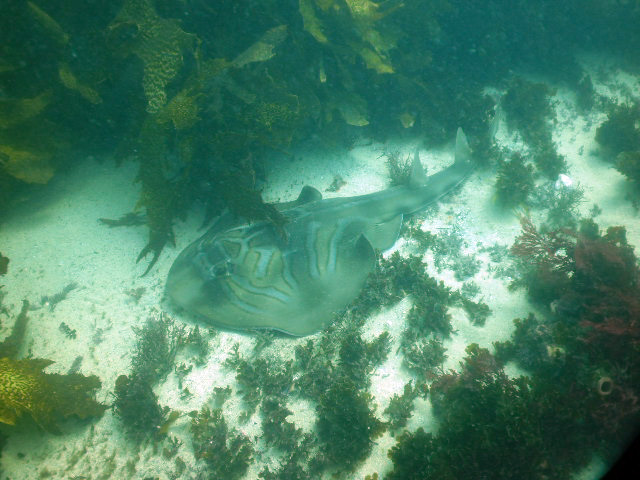 We saw 3 different species of shark (Wobby, PJ and Crested Horn). We were accompanied most of the time by big Eastern Blue Groupers. We had some fun with cutlefish, saw squid and Weedy Sea Dragons and we found a large Sea Turtle (I think it was a Loggerhead)